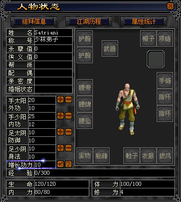 等级,装备,武功,经脉四大内容组成了新侠人物的主体框架。